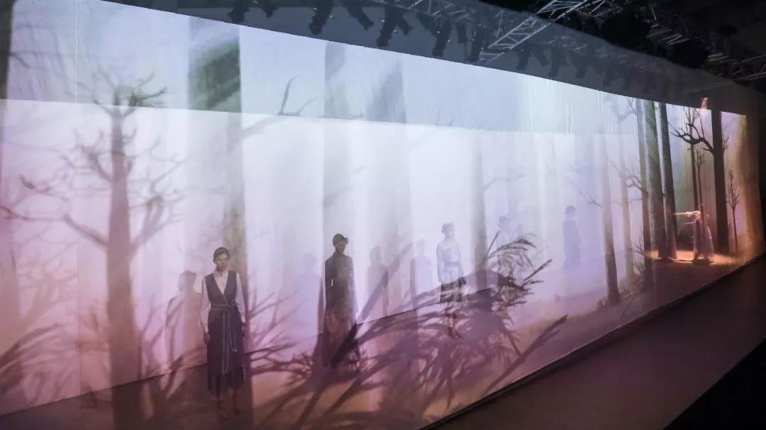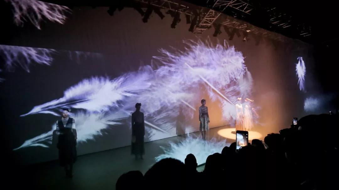 秀场伊始,优美的音乐声起,光晕闪闪的华美氛围,高科技全息投影效果,让人身临其境的进入到梦幻唯美的世界。